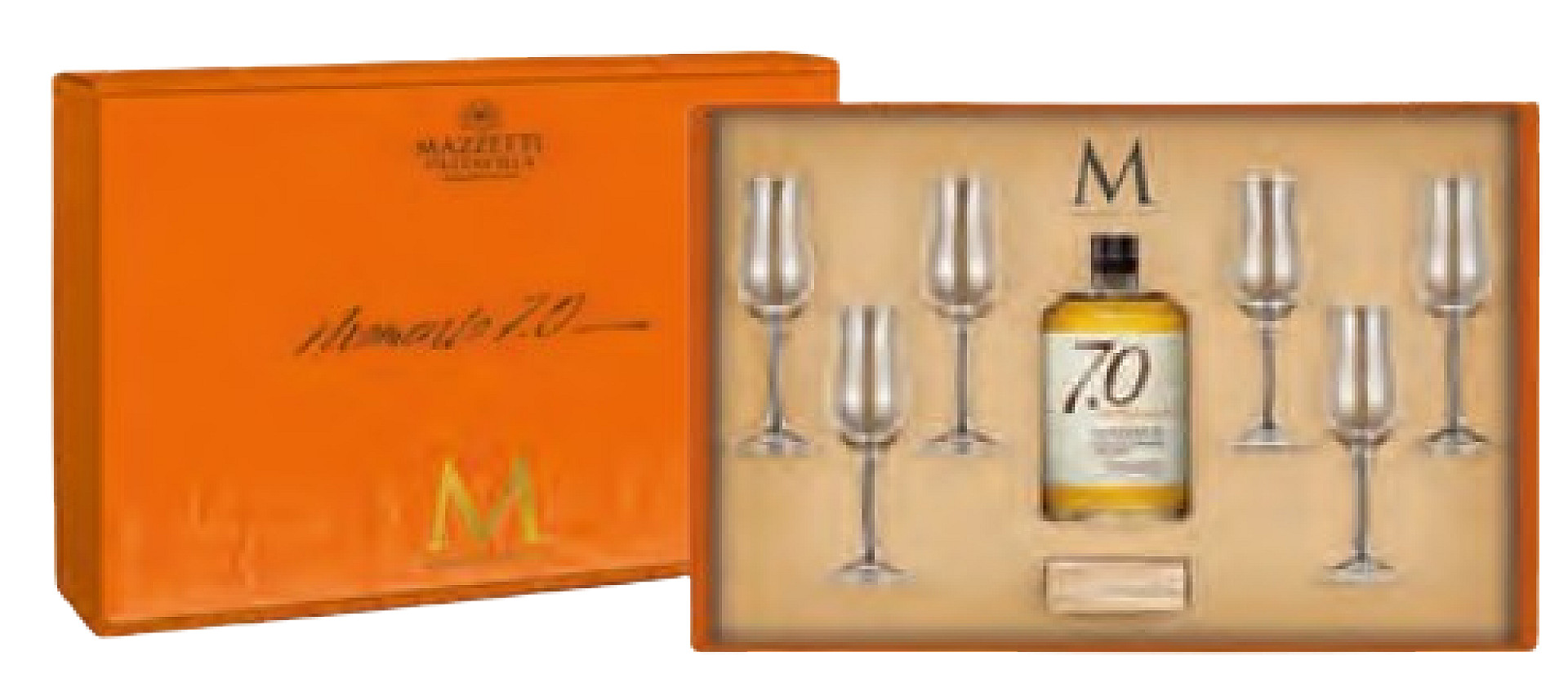 CONFEZIONE GRAPPA 7.0 RUCHE INVECCH. + 6 CALICI MAZZETTI